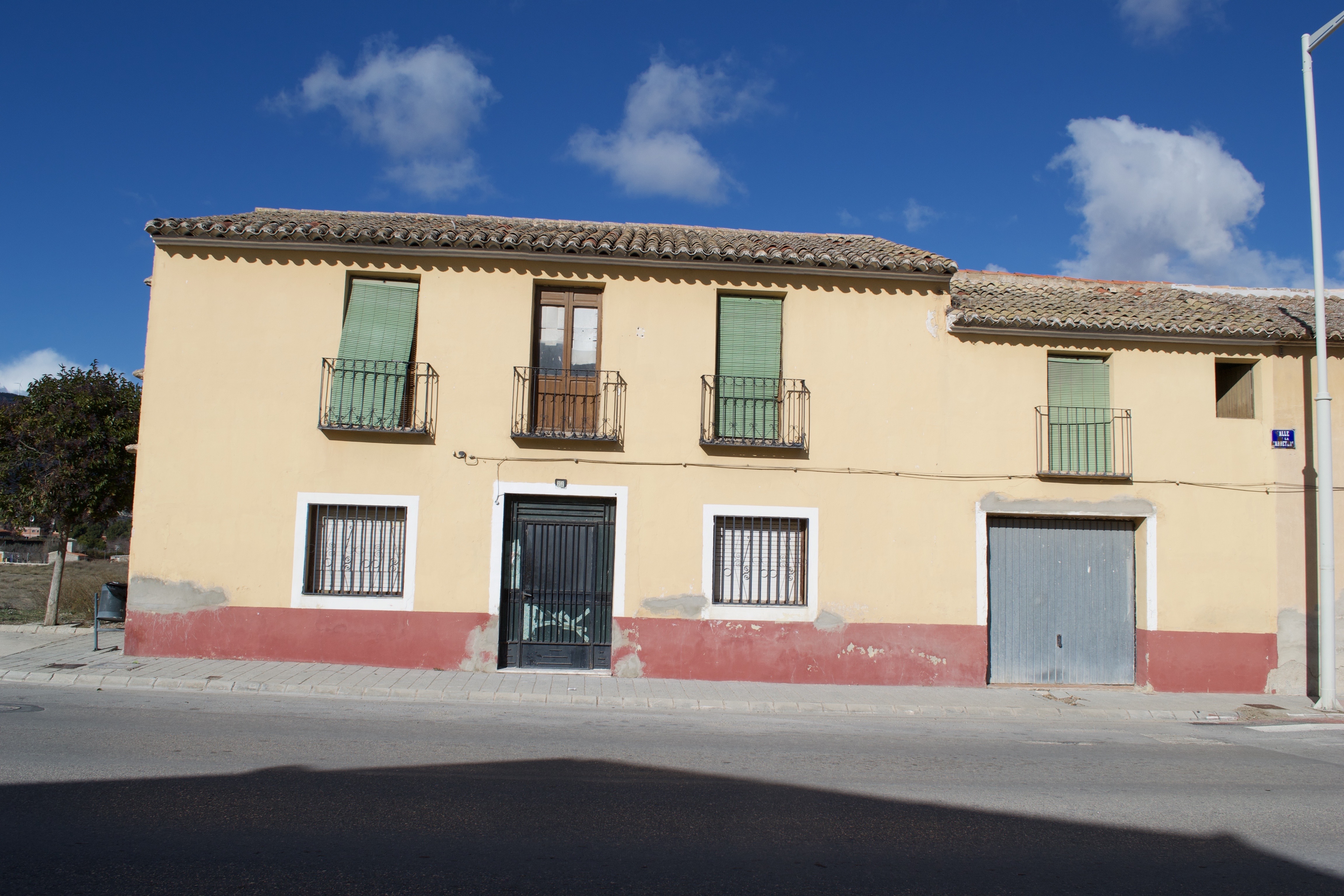 This beautiful and impressive large village house in Caudete has  immediate access to all local amenities. The 400 m2 property has had some work done but still requires further renovation.  Many original features are retained.  We feel that the house  would be Ideal for a B & B. There is a huge patio courtyard with plenty of room for a pool.  Alicante airport and beaches are 50 minutes by car. Yecla is a town with a singular spirit, due mainly to its enclave situation, and is the living image of 'Castilian' Murcia, the area of transition between the coastal zone and the plains of La Mancha. Preceded by the fame of its inhabitants, it is naturally a town of enormous character which has impressed such writers as Azorín or Pío Baroja. The town is watched over by the Castle and the Sanctuary of La Purísima, which locals troop up to every 7th December 'the day of the Alborada' firing volleys of gunpowder with their ancient harquebuses. Yecla has some rather unique sights, such as the Church of La Purísima or the Plaza Mayor; others of great beauty, like the Church of El Salvador, the Marketplace and the Clock Tower. This region offers a number of hiking, cycling and potholing alternatives. Take a bike along the track that leads to Monte Arabí (a mountain propitious for fables and legends) to see the Neolithic rock paintings that decorate the caves of the Canto de la Visera and Mediodía. A long-distance hiking trail (the GR7), which comes down from the North of Spain to the Levant, passes through the region. Aside from these attractions, Yecla has a very intense economic activity, based mainly on the manufacture of furniture, which is the object of an important world-famous fair. Also of note are the local wines, which have their own Denominación de Origen and have won numerous awards in competitions both in Spain and abroad.
